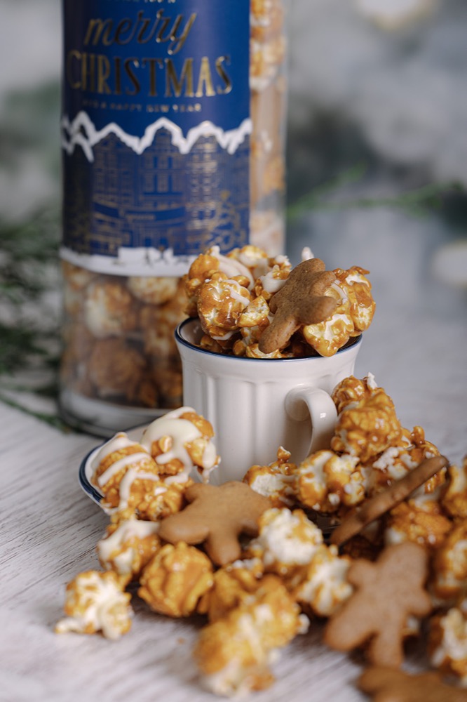 PALOMITAS CUBIERTAS DE CARAMELO , CHOCOLATE BLANCO Y MUÑECOS DE JENGIBRE