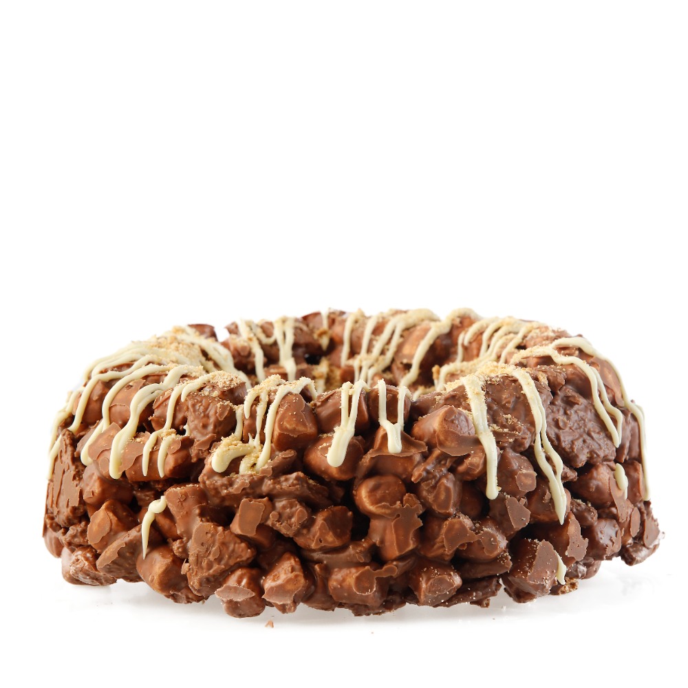 BOMBON + GALLETA GRAHAM + CHOCOLATE DE LECHE MEDIDAS: 20 X 20 X 7 CM PESO: 770 GR PORCIÓN: PARA 6-8 PERSONAS APROX