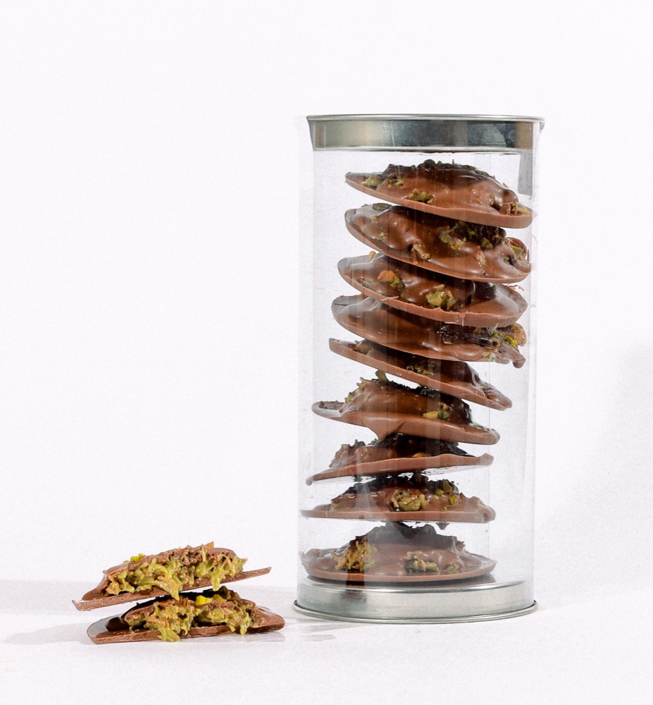 CHOCOLATE DE LECHE + CREMA DE PISTACHE + KATAIFI TOSTADO + CREMA DE PISTACHE